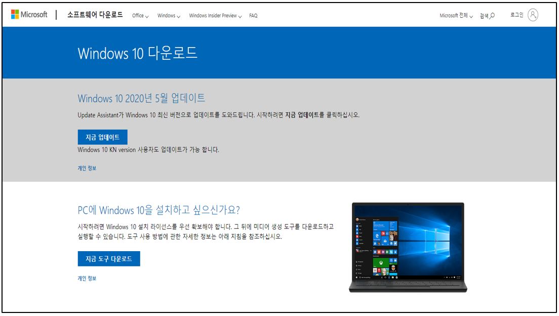 1. Window 운영체제 설치 파일을 다운로드합니다.