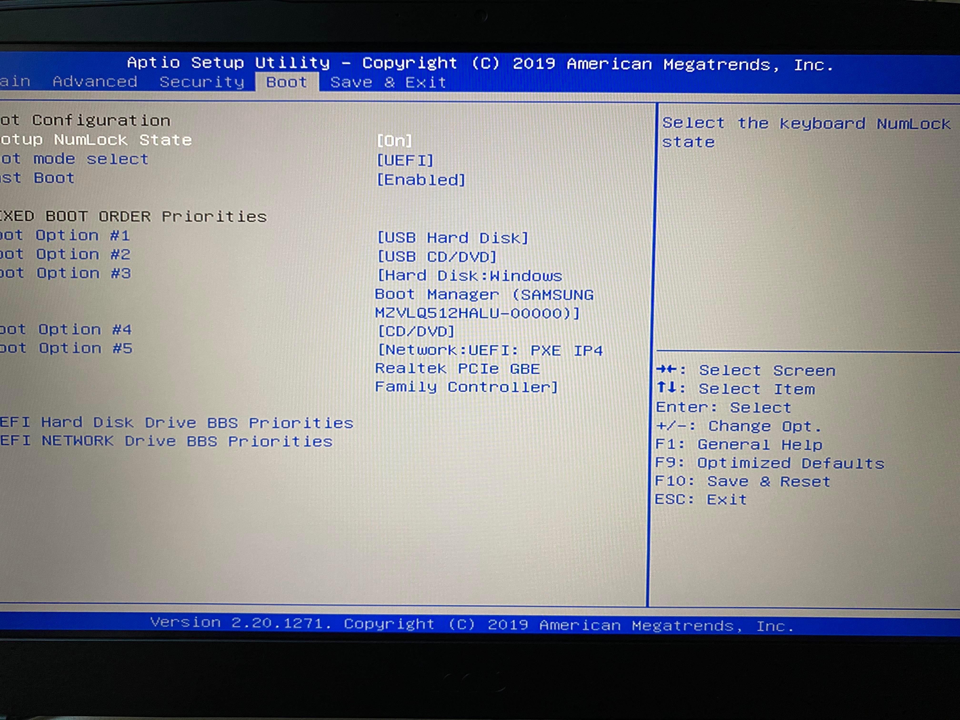 4. 노트북을 재부팅한 후, BIOS 설정으로 진입합니다. BIOS 설정에서 부팅 순서를 USB로 설정합니다.