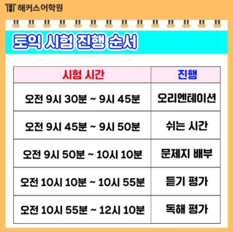 먼저 토익은 세계 최대 교육평가 기관인 ETS(Educational Testing Service)에서 주관하는 시험으로 ETS는 토익 뿐만 아니라 토익 스피킹, 토플, GRE, SAT 등의 시험 또한 개발하여 사용 중입니다. 토익 시험 구성은 듣기 능력을 평가하는 LC영역과 읽기 능력을 평가하는 RC영역으로 나누어지며 각 영역당 100문항씩 총 495점이 배점되어 있습니다. LC 영역 응시시간은 45분이며 RC영역 응시 시간은 75분으로 쉬는 시간 없이 진행됩니다.