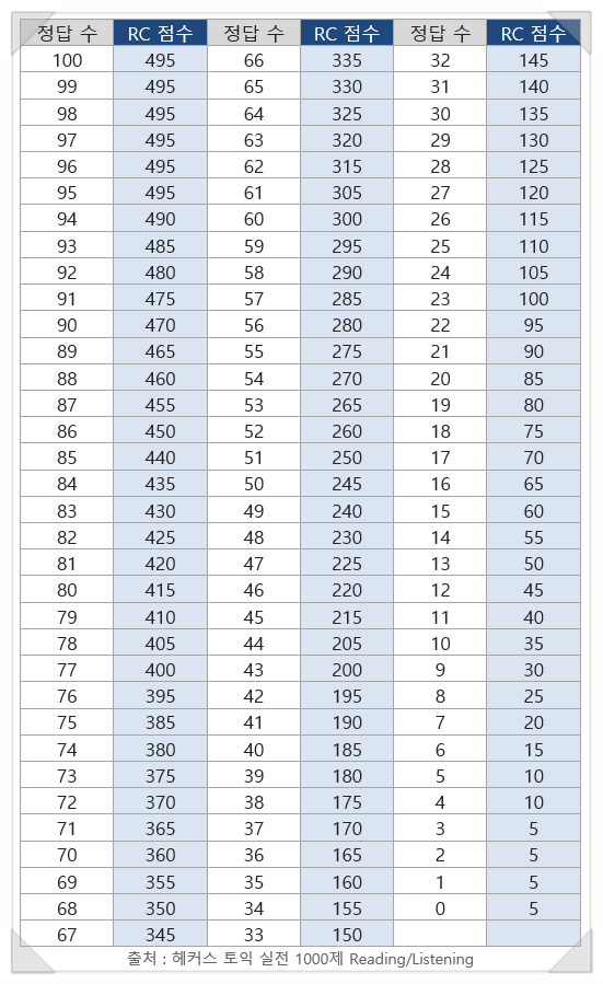 토익 점수 환산표 / 토익 점수 환산기 사용 방법